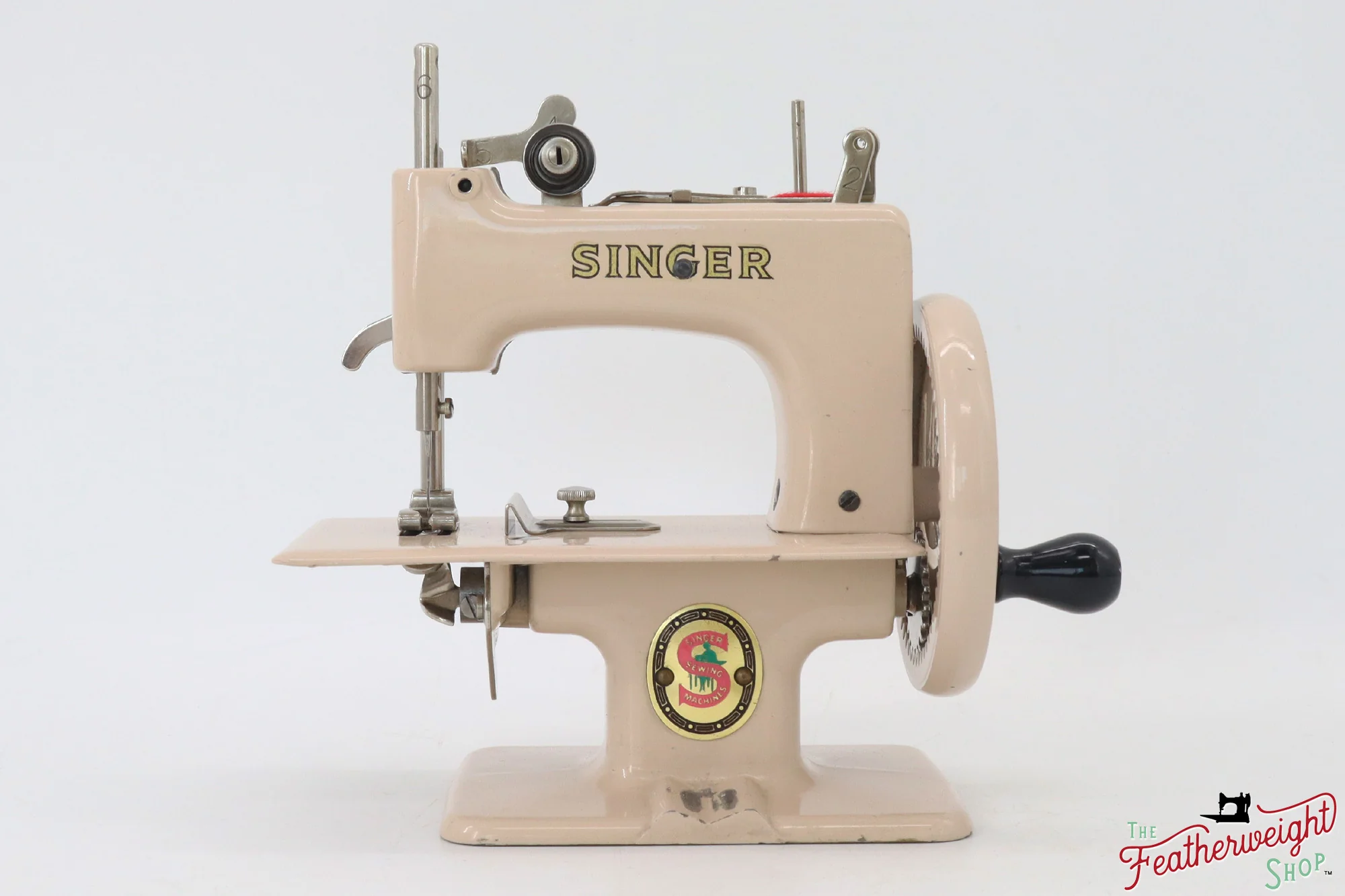 This will be an excellent piece for the experienced sewing machine collector or a young collector just getting their start. (Christian first learned to sew on a Sewhandy at age 4.) It will be a treasured machine for anyone to pass on to future generations.